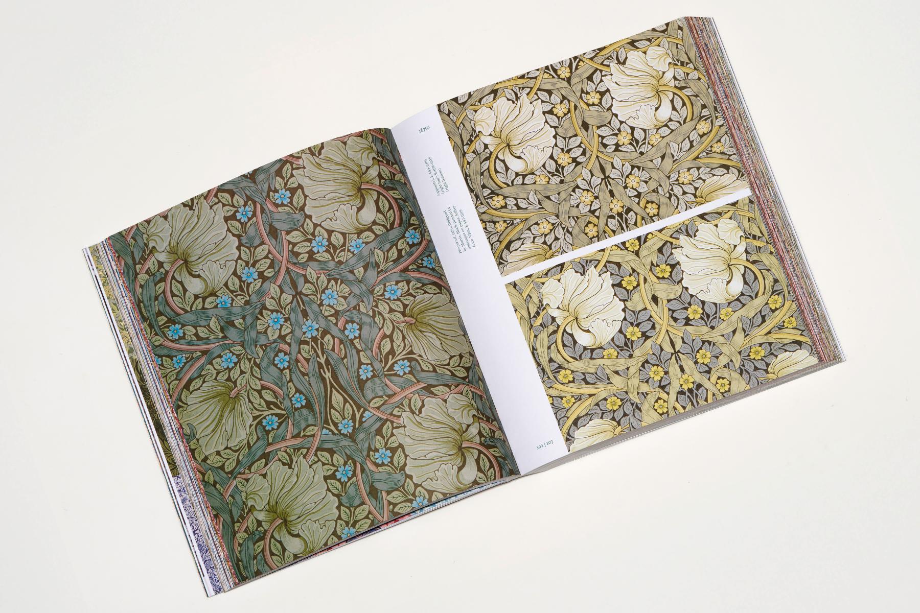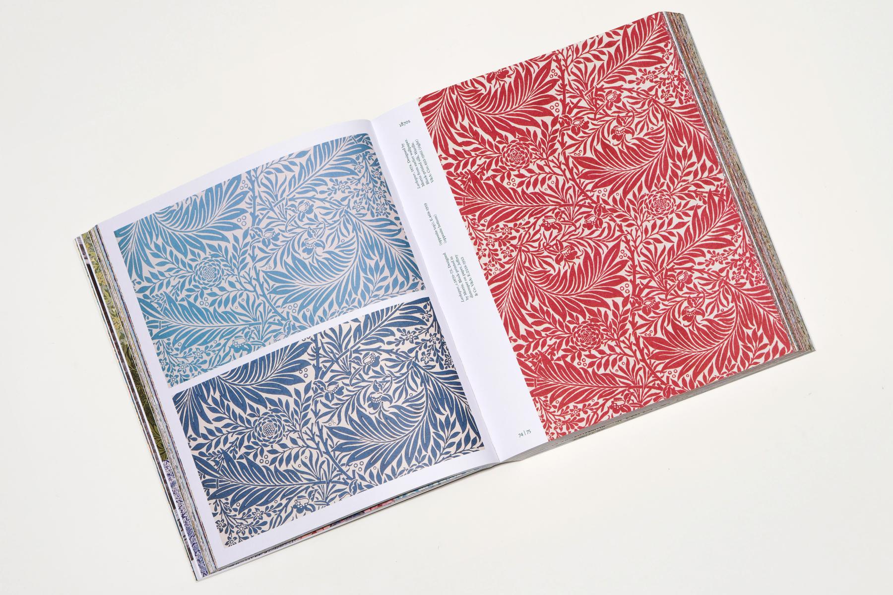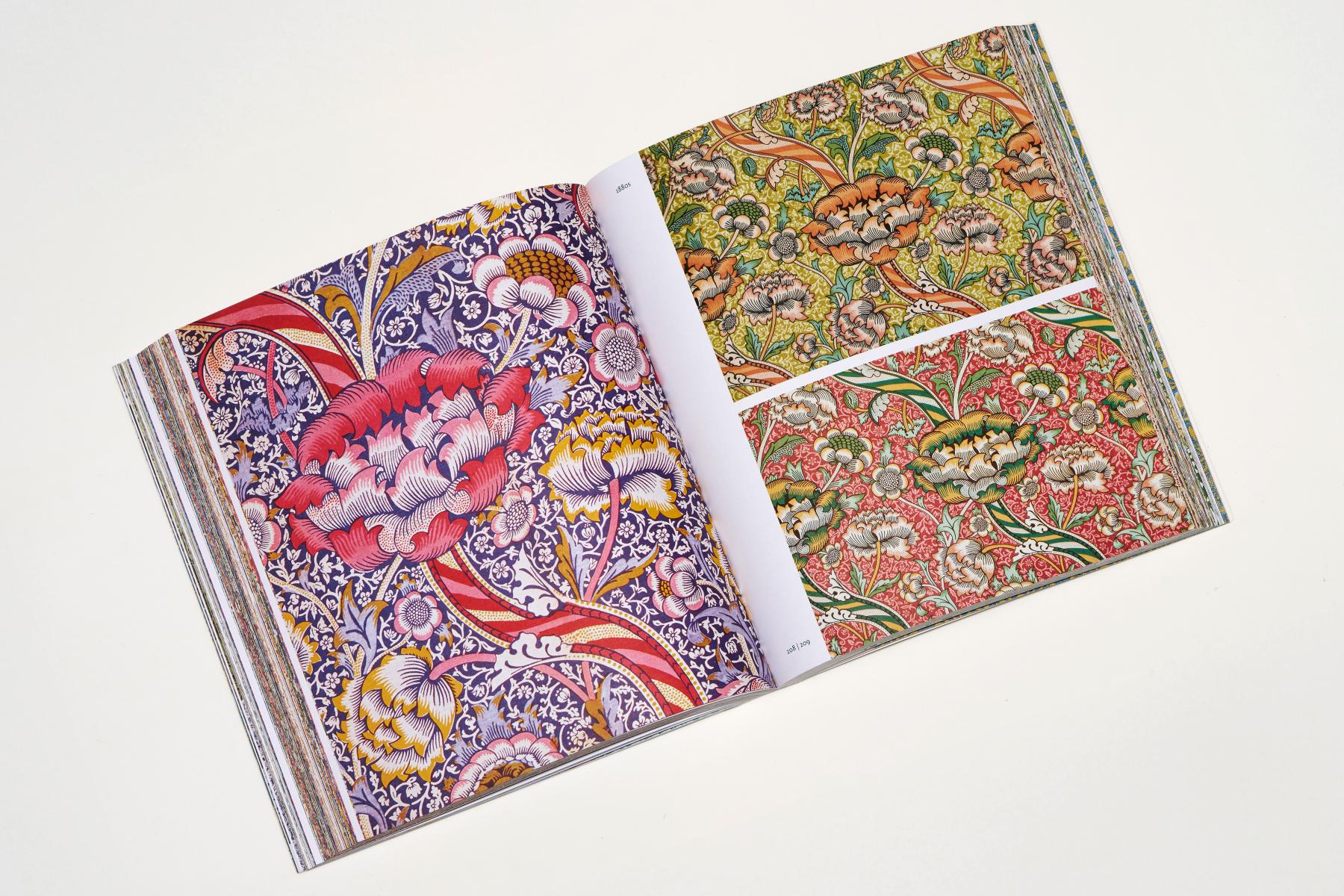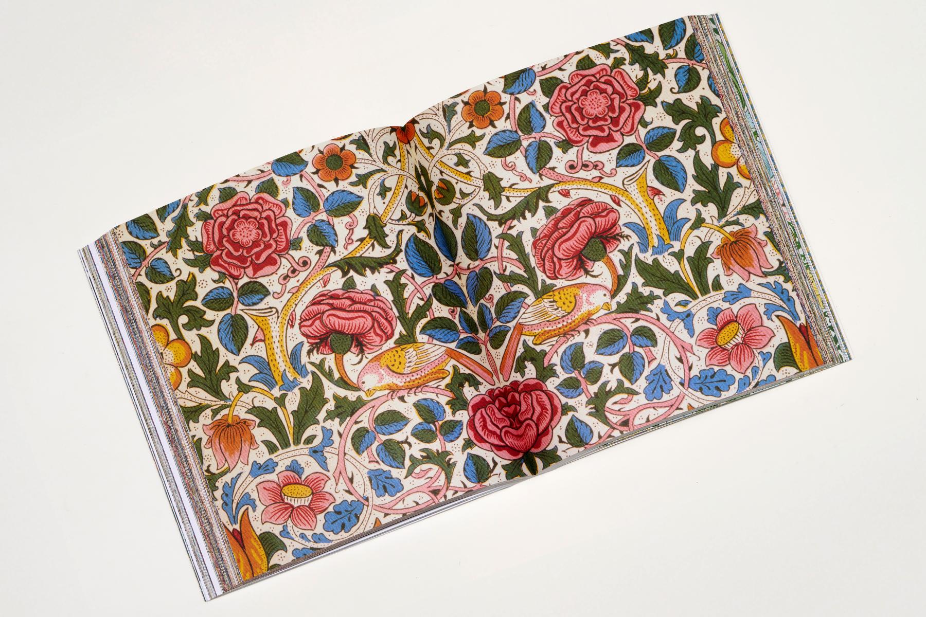 William Morris (1834–1896) was a pioneer of the Arts and Crafts Movement and one of the most influential designers of all time. This compact, extensively illustrated sourcebook brings together nearly 400 of Morris’s ingenious textile and wallpaper patterns, arranged decade by decade. The book features a jacket that reveals a second cover beneath, and all text is printed in British Racing Green Pantone. To maximise the page layouts, captions are set sideways, running up the inner margins, so as not to detract from the impact of these extraordinary designs.